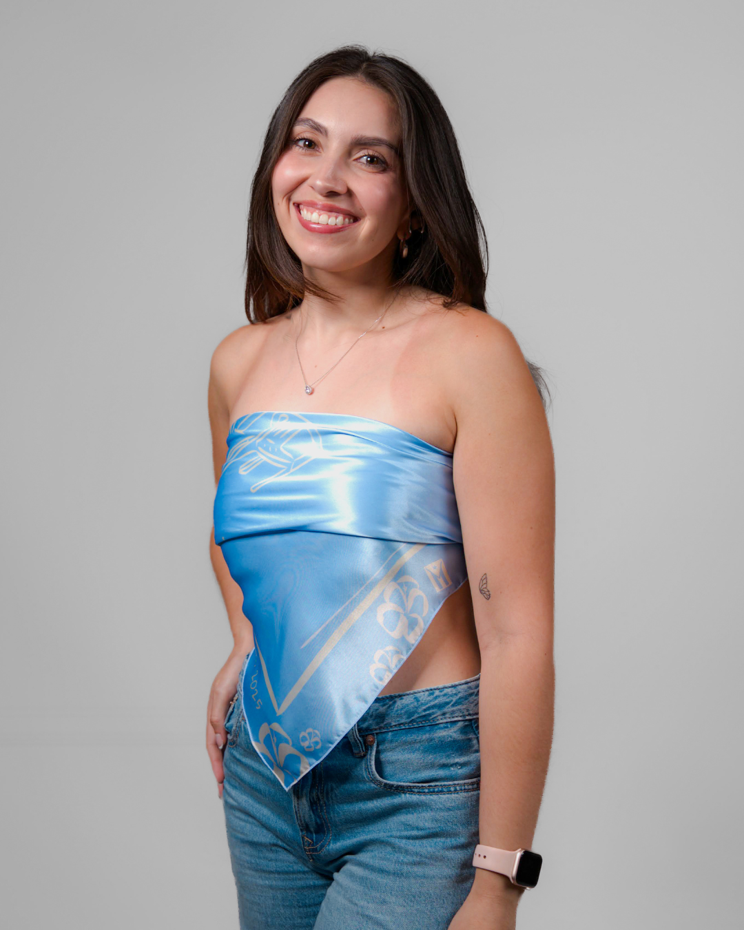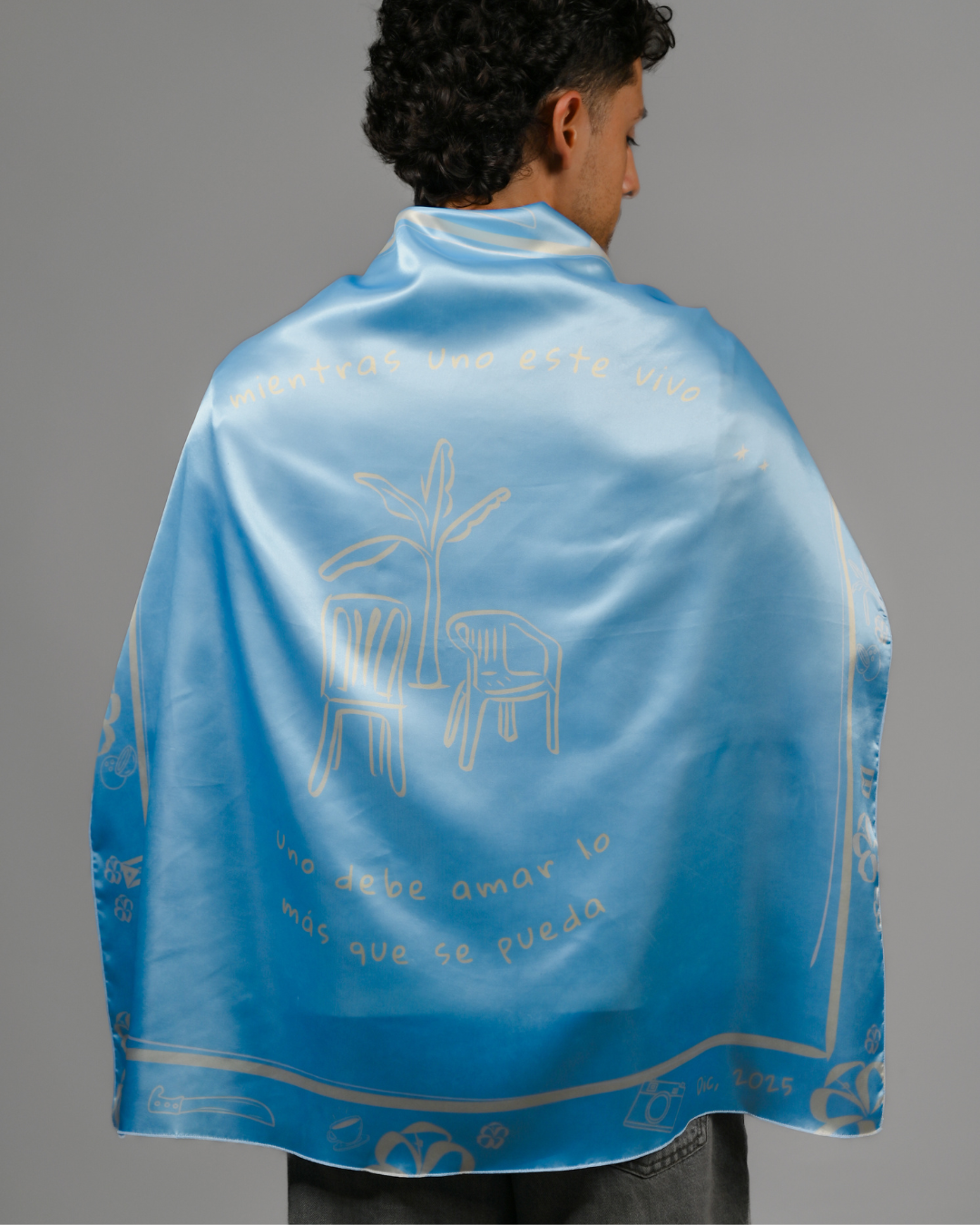 La pañoleta Inolvidable trae un mensaje sencillo pero poderoso: disfrutar y amar todo lo que se pueda mientras hay vida. Con su diseño relajado y colores frescos, es el accesorio perfecto pa’ llevar siempre buena vibra encima.